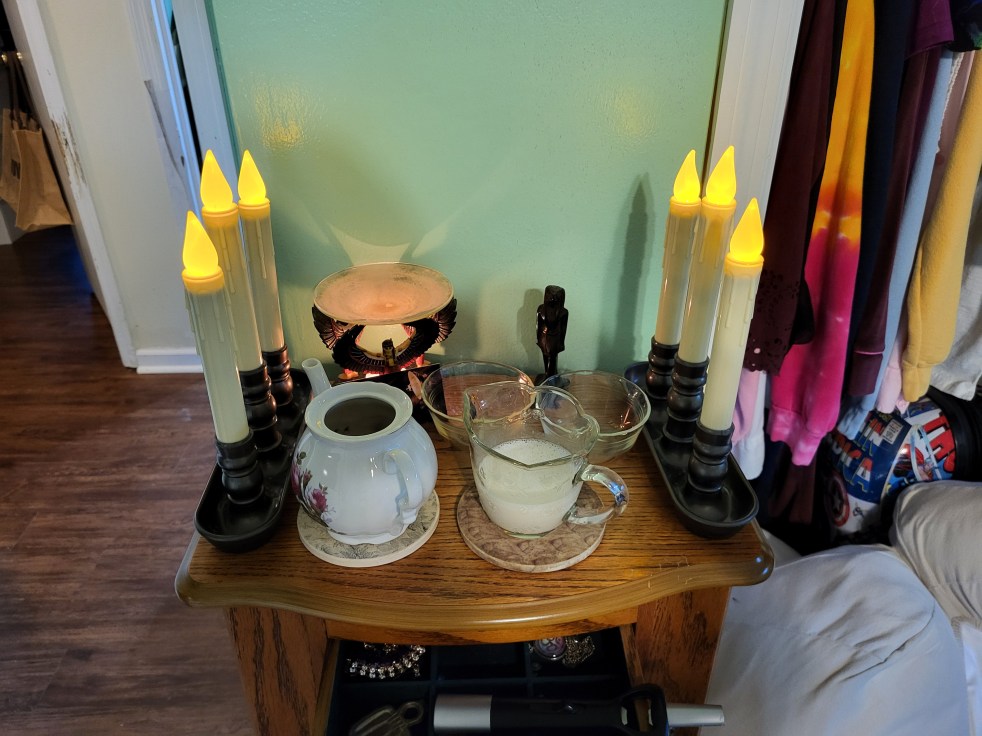 Okay, that was very clickbaity. (I couldn’t resist.) But, well, check it out… This all started with the realization one day that since, very frequently, I do rite to multiple gods at once, maybe those gods would like their own separate drinking vessels. But the space on my shrine is limited. What to do? Shot… Continue reading Shot glasses on the shrine!